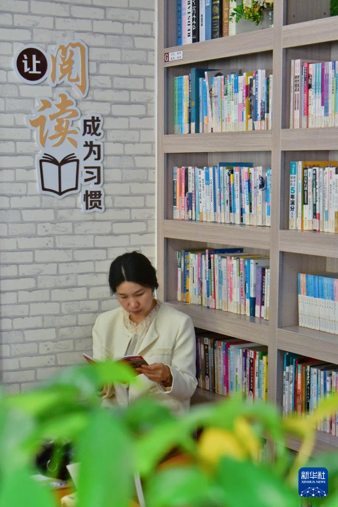 4月23日,读者在江苏省扬州市生态科技新城的农家书屋内阅读书籍。