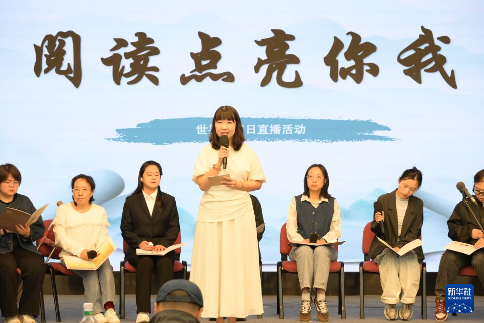 4月23日在位于北京的中国盲文图书馆拍摄的“阅读点亮你我”世界读书日直播活动现场。
