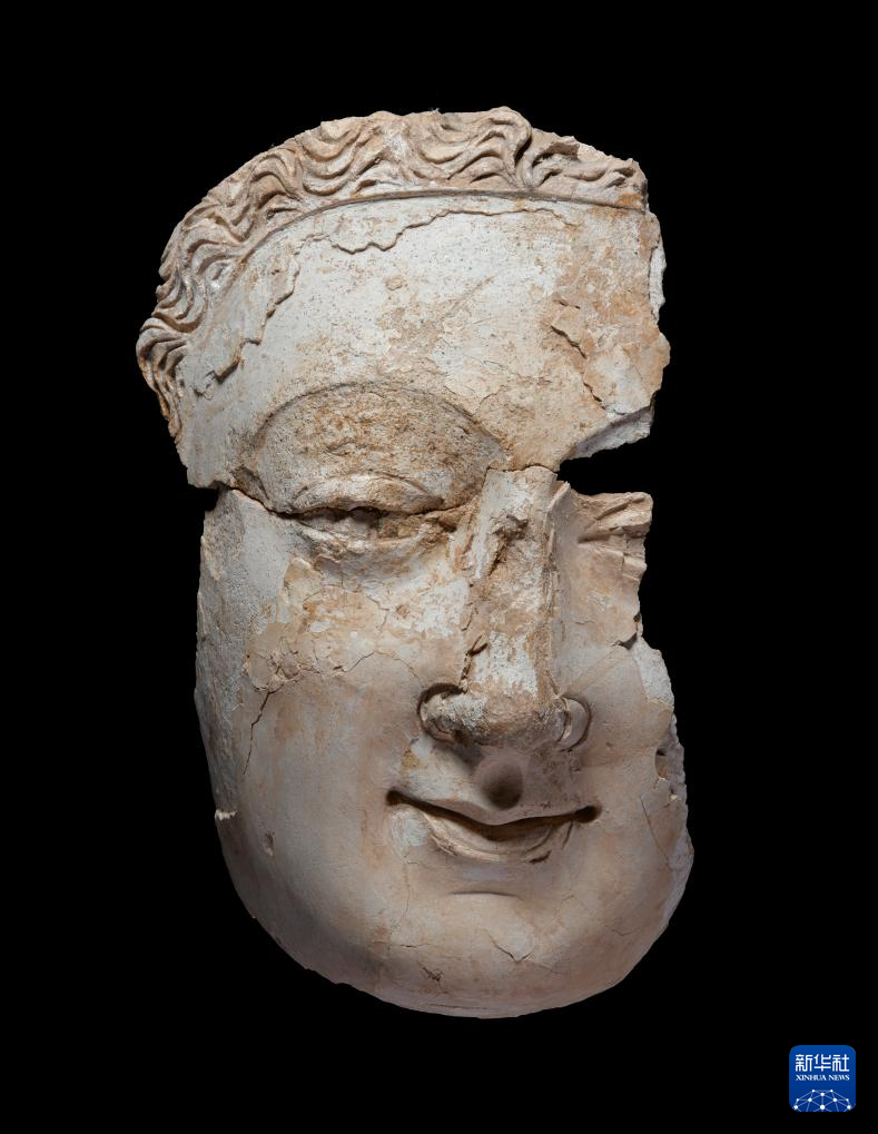 新疆喀什莫尔寺遗址出土的石膏大佛脸(资料照片)。