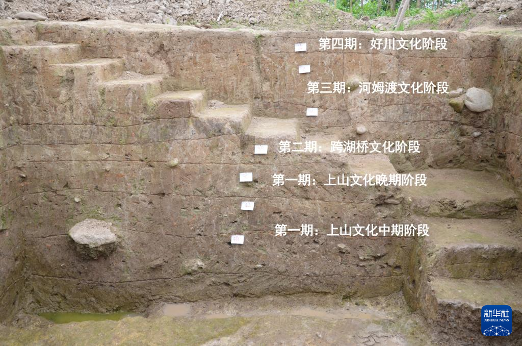在浙江仙居下汤遗址的一处探方里,可以看到它经历了4个新石器文化阶段(资料照片)。