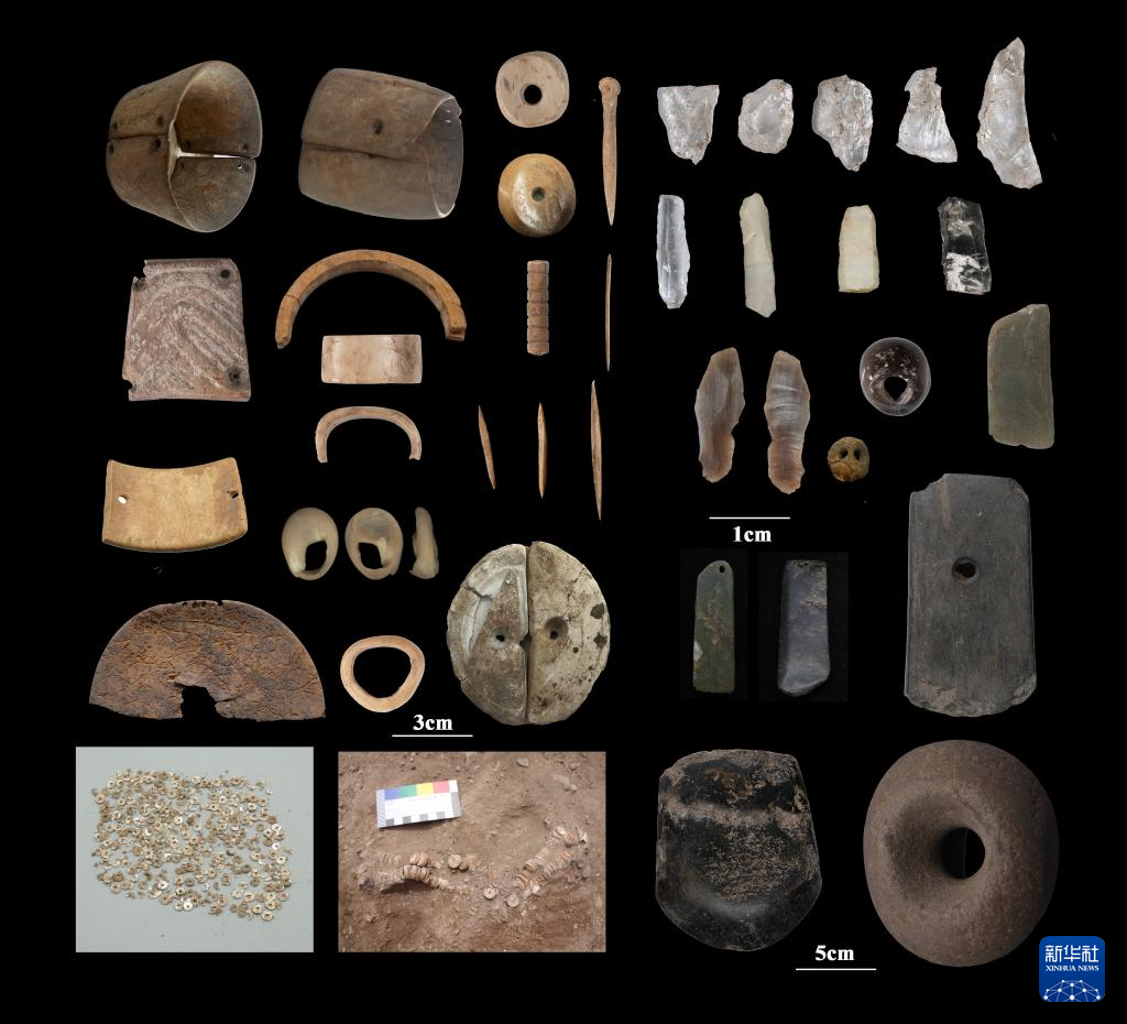 西藏康马玛不错遗址出土的第二期遗物(石质、骨质、金属装饰品,骨针、滑石珠、红玉髓、玻璃珠等)(资料照片)。