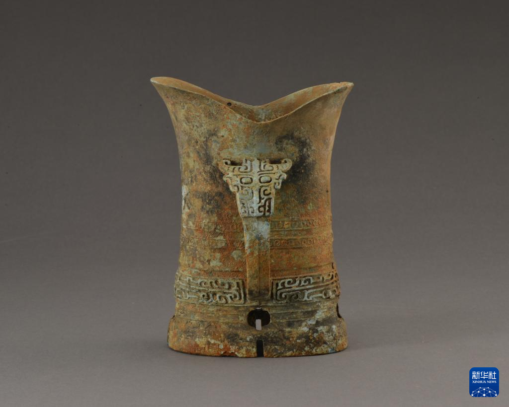湖北黄陂盘龙城遗址杨家湾M17出土的铜带鋬觚形器(资料照片)。