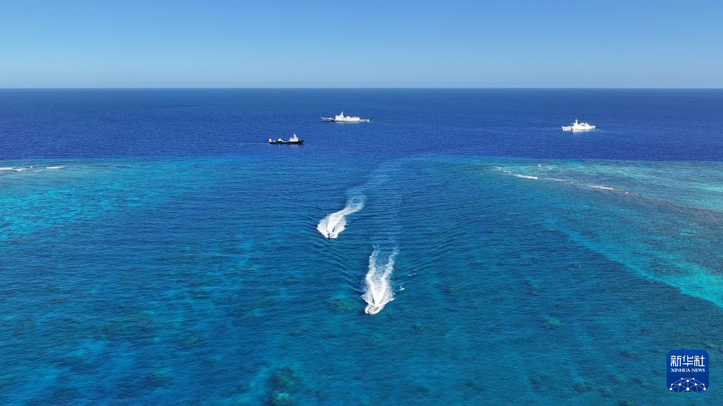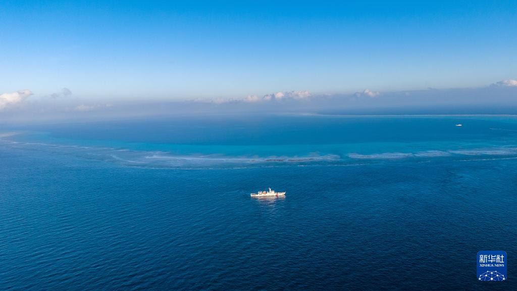 3月1日,中国海警高栏舰在黄岩岛附近开展常态化巡逻管控任务(无人机照片)。