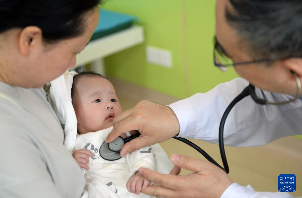 4月22日,在贵阳市观山湖区妇幼保健院,来自山东第一医科大学附属中心医院的医疗专家在为孩子做检查。