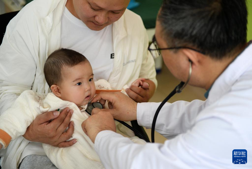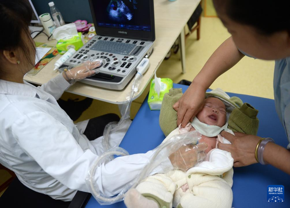4月23日,在贵州清镇市妇幼保健院,一名小朋友在接受检查。