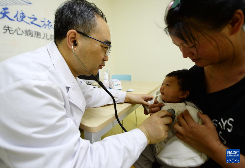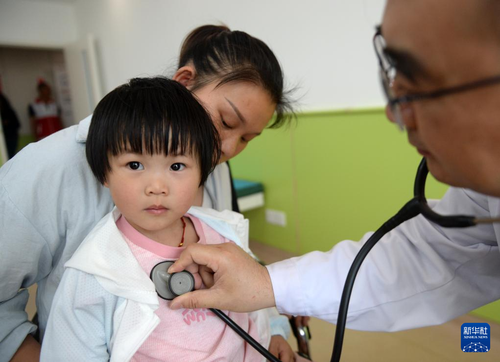 4月23日,在贵州清镇市妇幼保健院,来自山东第一医科大学附属中心医院的医疗专家在为孩子做检查。