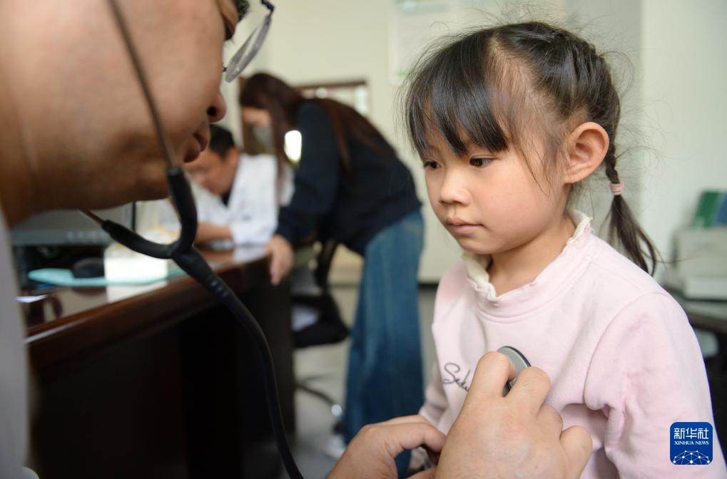 4月24日,在贵州黔西南布依族苗族自治州兴义西南医院,来自山东第一医科大学附属中心医院的医疗专家在为孩子做检查。