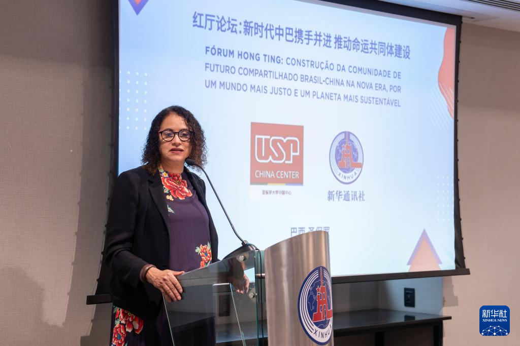 4月25日,巴西共产党主席、政府科技部部长卢西亚娜·桑托斯在巴西圣保罗举办的“红厅论坛:新时代中巴携手并进 推动命运共同体建设”研讨会上致辞。