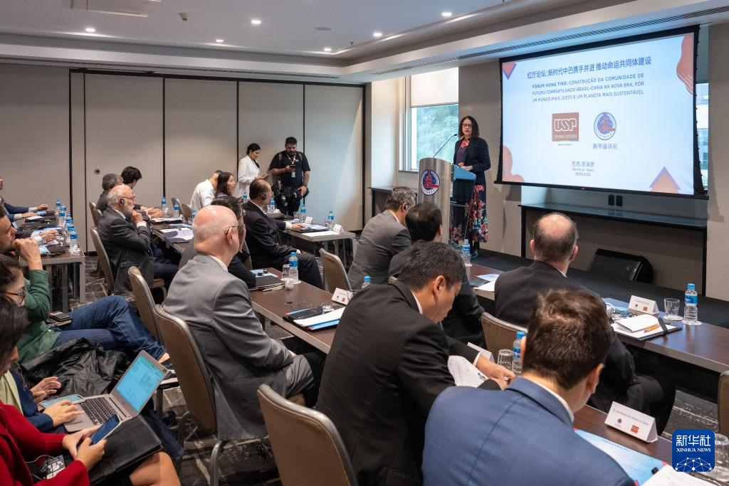 这是4月25日在巴西圣保罗拍摄的“红厅论坛:新时代中巴携手并进 推动命运共同体建设”研讨会现场。