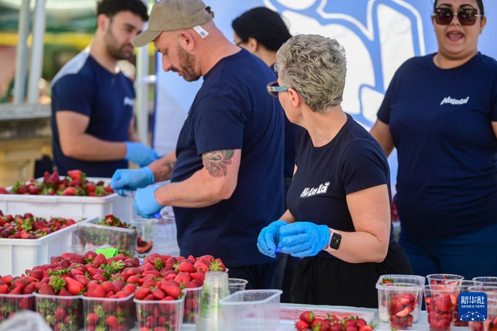 地中海岛国马耳他27日在北部城市姆贾尔举行一年一度的草莓节活动,吸引大量马耳他当地民众和外国游客参加。人们在活动期间不仅可以品尝到刚刚采摘的新鲜草莓,还可以品尝用草莓制作的各种甜品、饮品等。