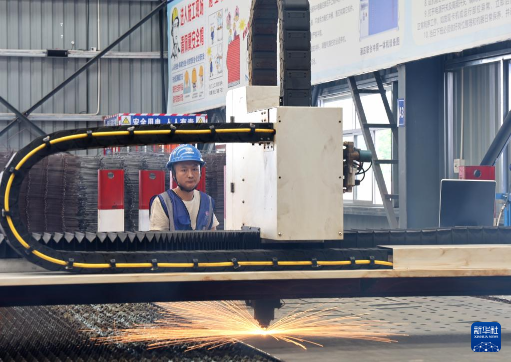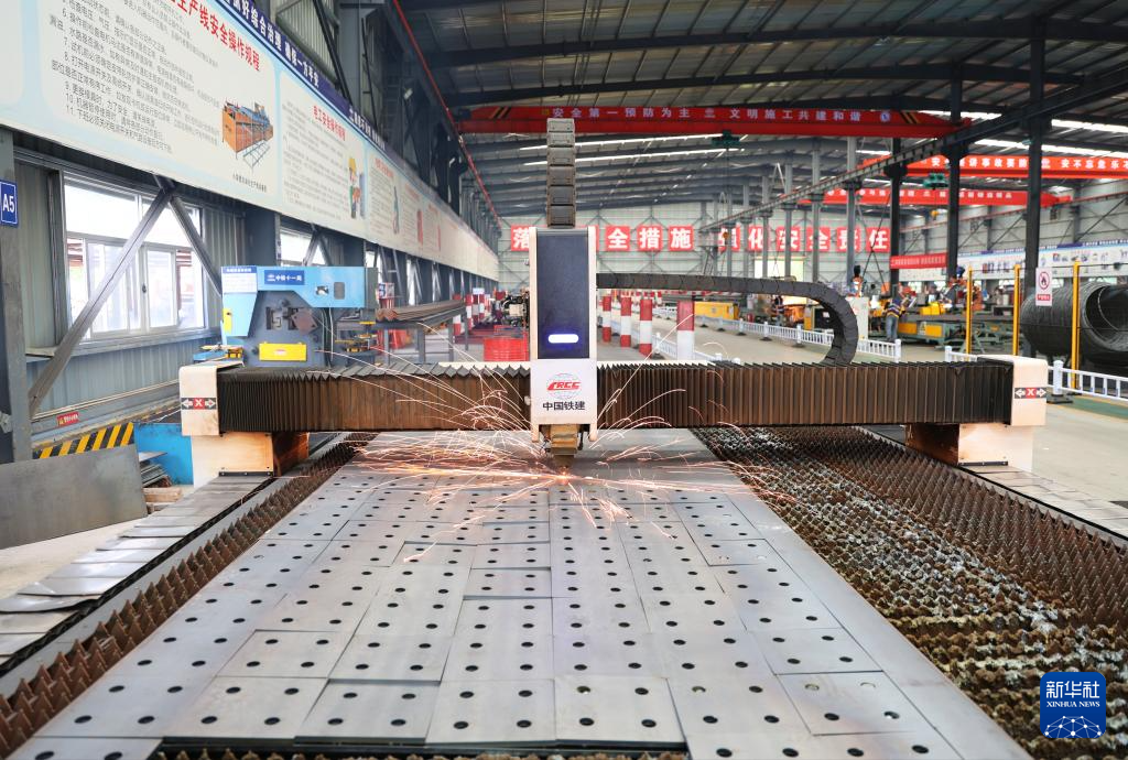 4月27日,深圳外环田头山隧道群钢筋场的数控智能激光切割机在切割钢板部件。