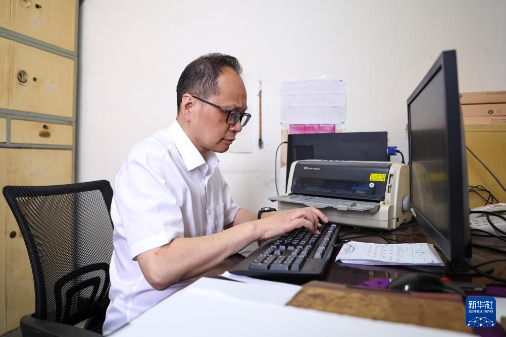 4月27日,中国电信杭州分公司专职电报员任宏在电报房内处理电报业务。