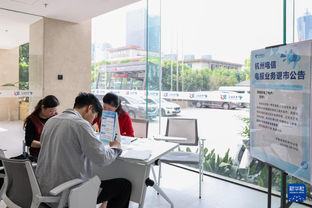 近日,中国电信杭州分公司发布公告称,自2025年5月1日起将全面停止浙江杭州地区电报业务。该消息引发了各地通信爱好者的“怀旧潮”。在中国电信杭州武林广场营业厅,人们排起长队办理发电报业务,纪念这一即将来临的历史时刻。