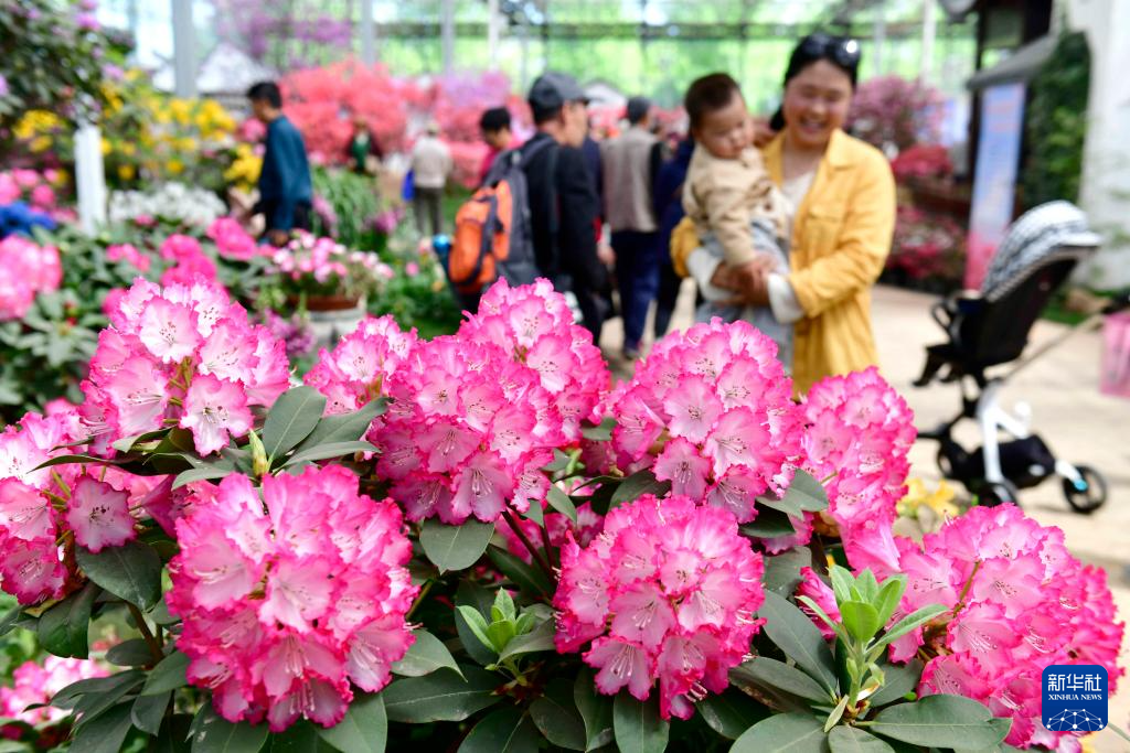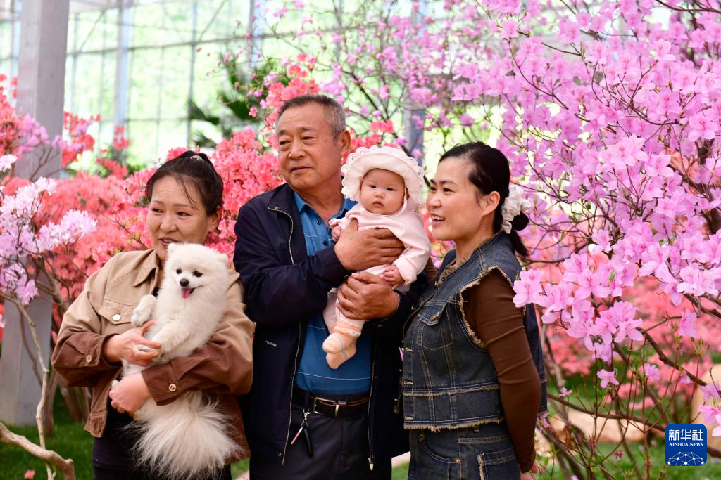 4月28日,在中国杜鹃花博览园,游客在赏花拍照。