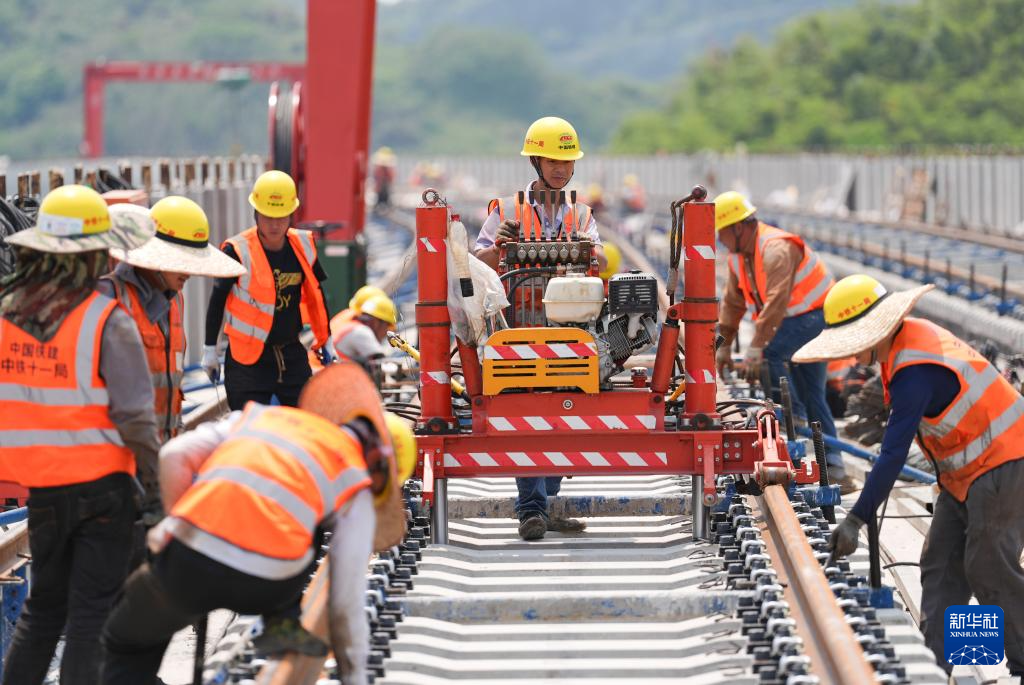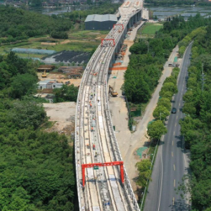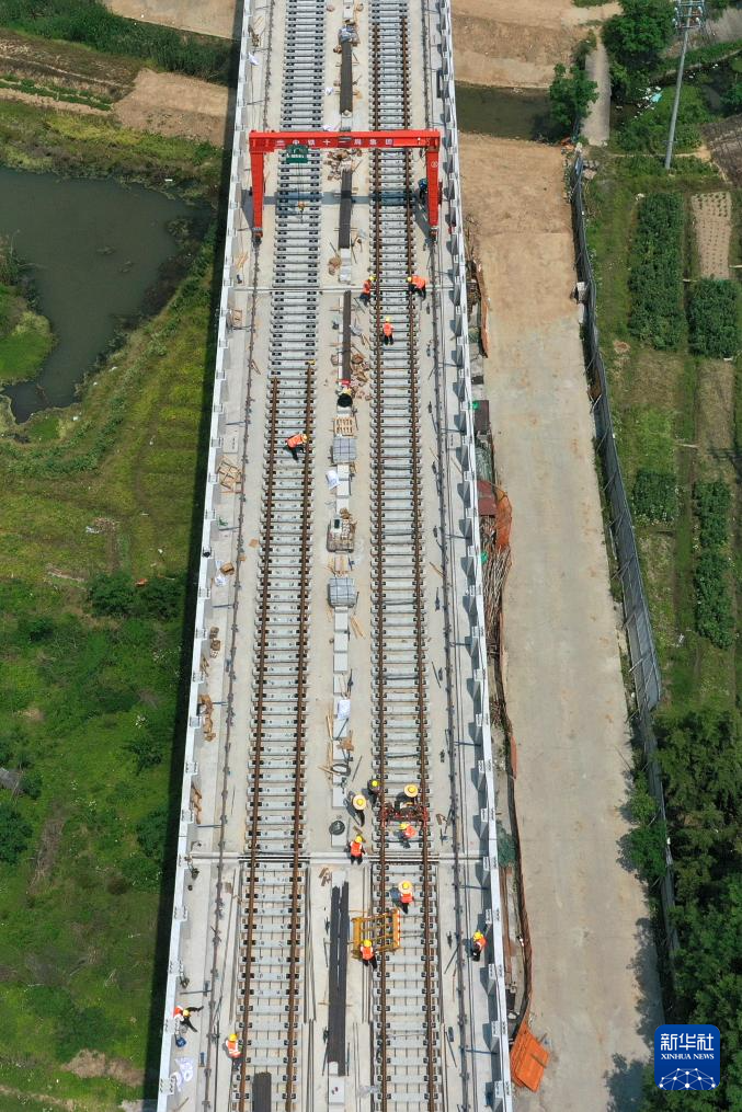 近日,在浙江杭州至湖州德清市域铁路Ⅱ标段轨道工程的铺轨施工现场,铁路建设者多点同步施工,抓进度、保节点,推进项目建设。