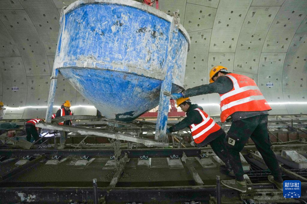 4月29日,中铁十四局的施工人员在进行京唐城际铁路北京段的轨道道床板浇筑。
