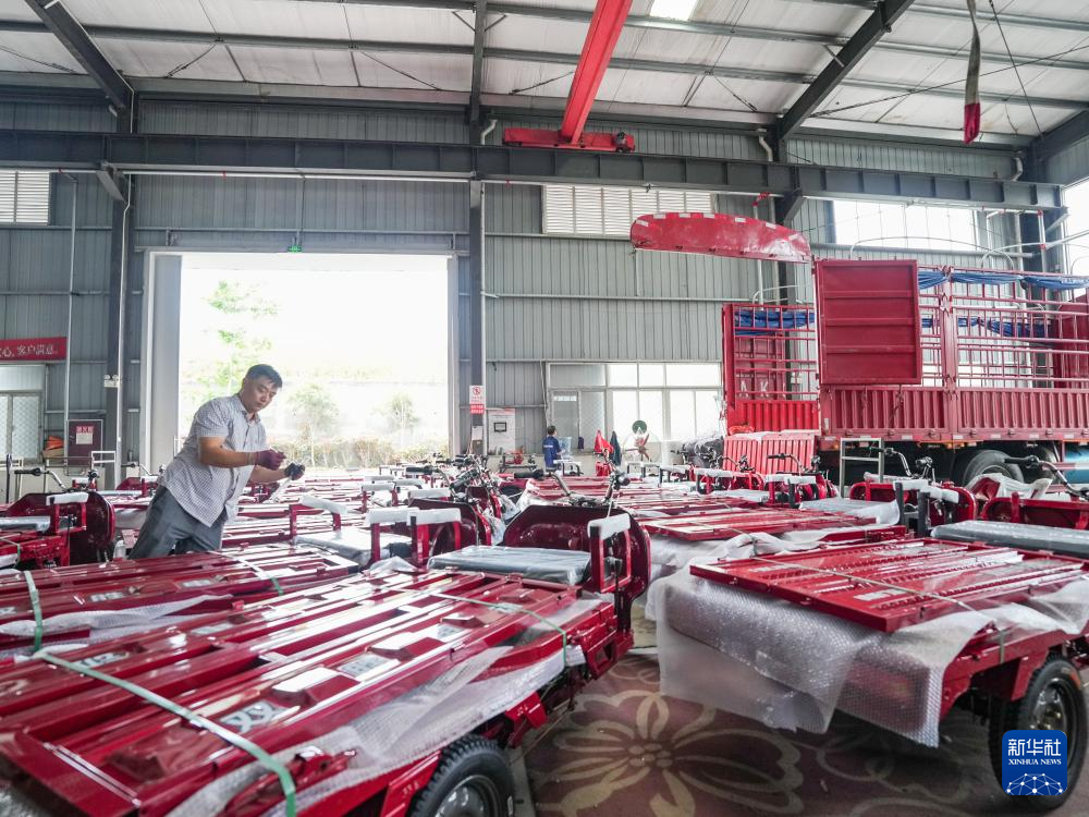 在四川眉山天府新区双胜新能源车业有限责任公司的生产车间流水线上,工人们正紧锣密鼓组装一批即将发往非洲、东南亚的电动三轮车。