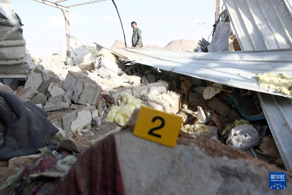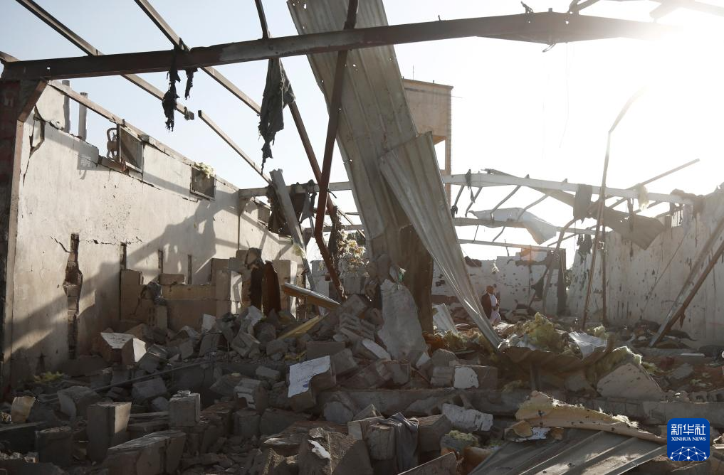 这是4月28日在也门萨达省拍摄的遭到空袭的拘留中心废墟。