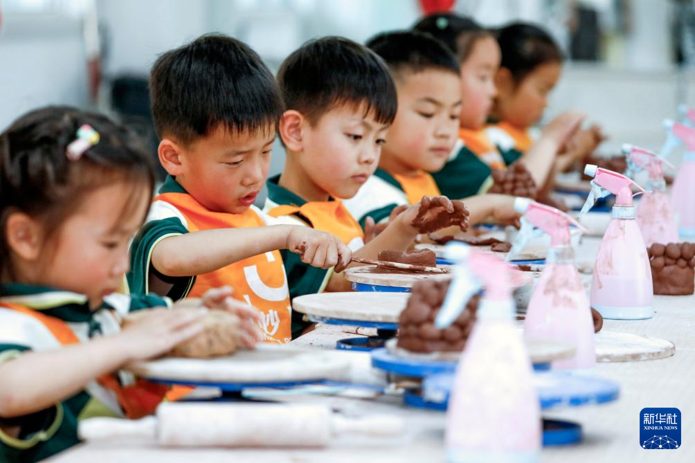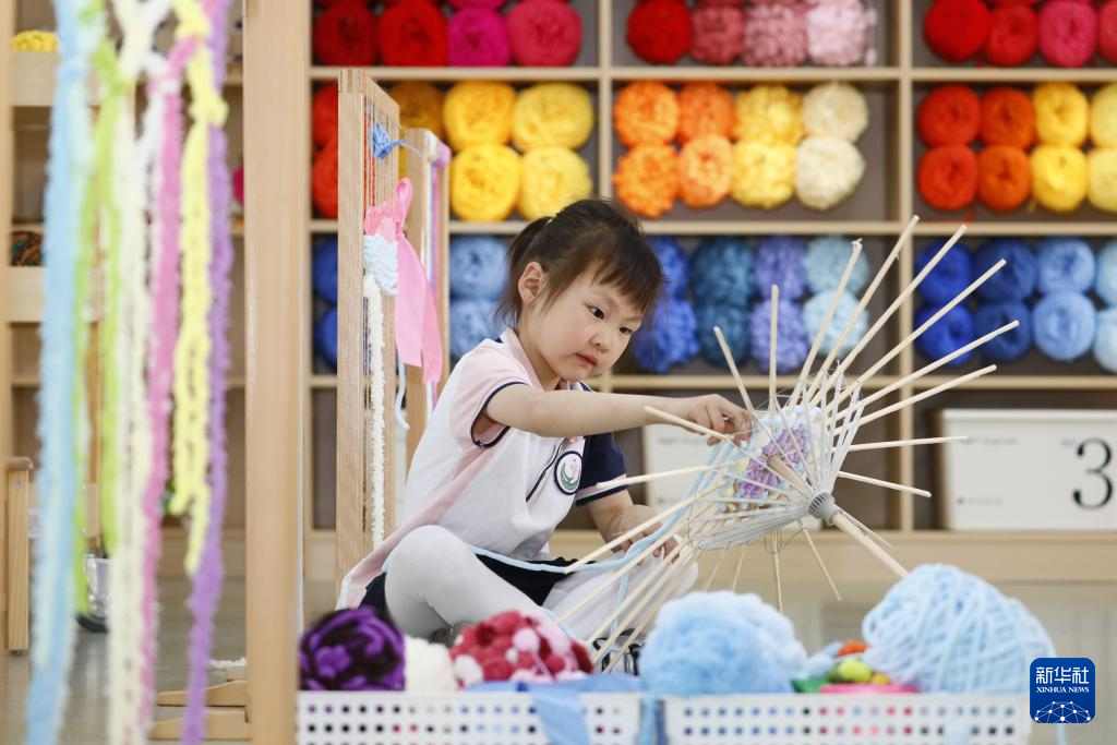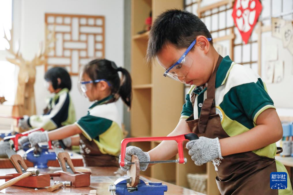 为迎接“五一”国际劳动节,江苏省海安市高新区实验幼儿园的孩子积极参与木工、泥塑、编织等手工劳动,体验劳动的魅力。