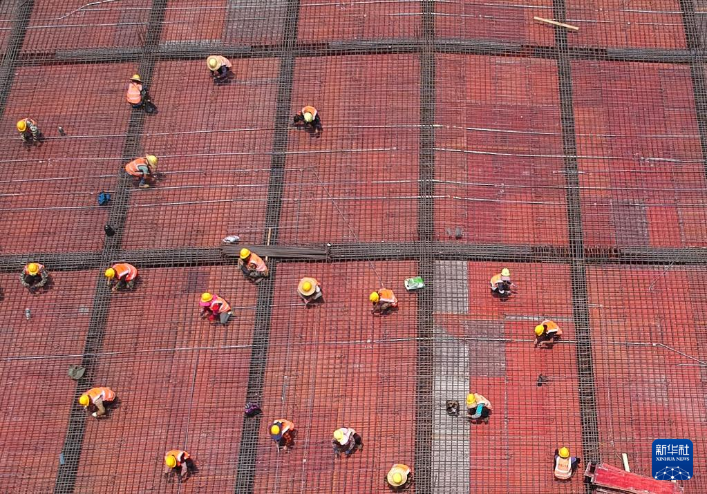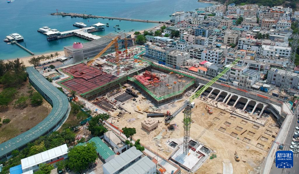 这是4月29日拍摄的海棠湾蜈支洲岛旅游区配套工程施工现场(无人机照片)。