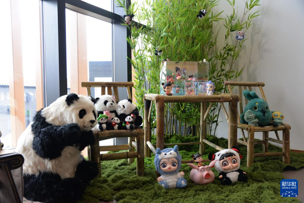 这是4月28日在大阪世博会中国馆拍摄的由四川活动周展示的大熊猫等文创产品。