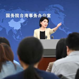 4月30日,国务院台湾事务办公室在北京举行例行新闻发布会。这是国台办发言人朱凤莲邀请记者提问。