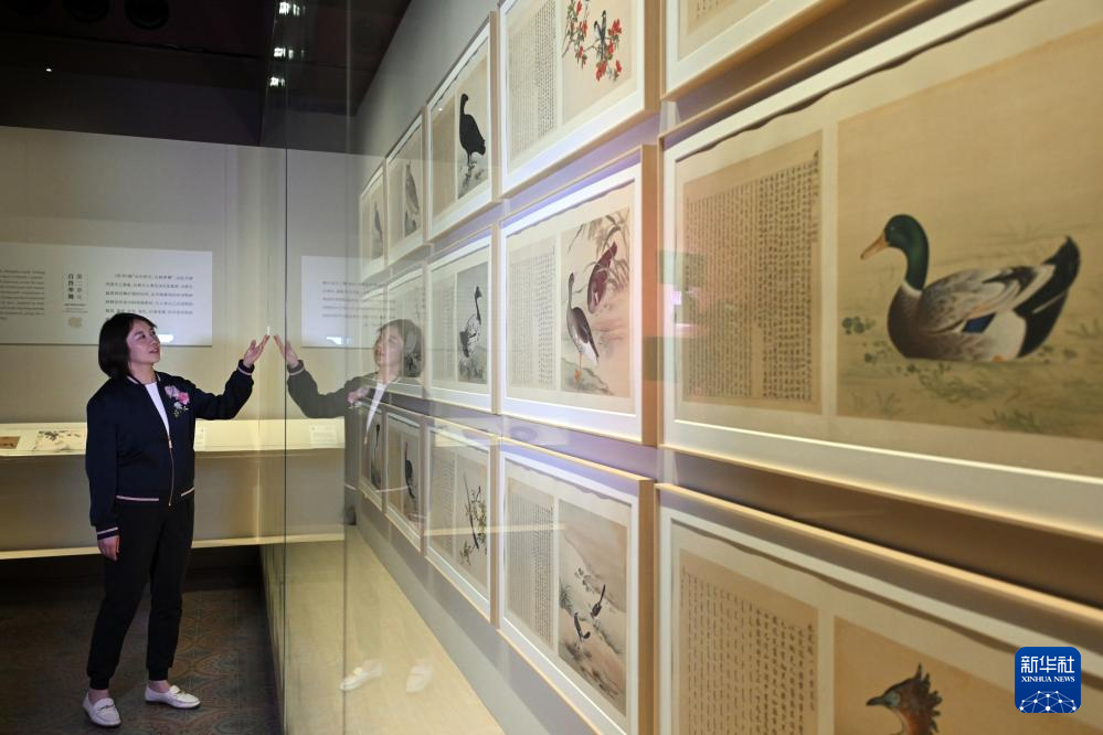 故宫博物院书画部研究馆员鲁颖在介绍清宫旧藏《鸟谱》(4月28日摄)。