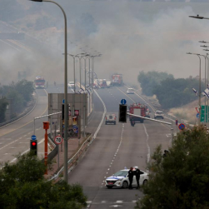 4月30日,耶路撒冷附近的1号公路由于山火被警方封锁。