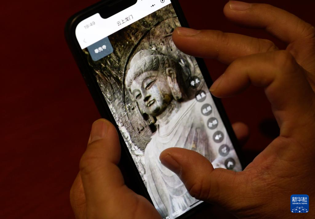 4月17日,游客使用“云上龙门”手机小程序游览龙门石窟。
