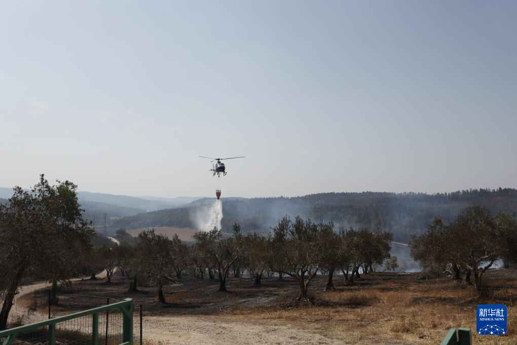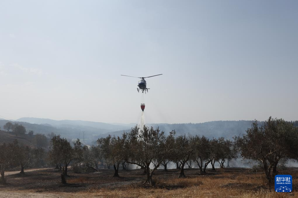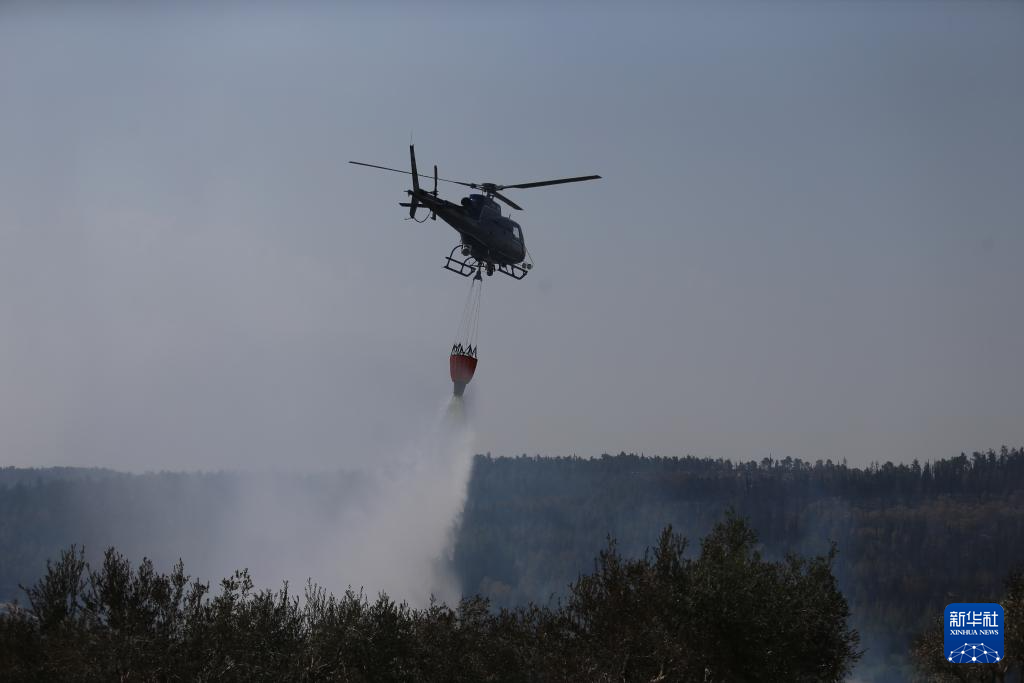 5月1日,直升机在耶路撒冷附近的山火现场进行灭火作业。