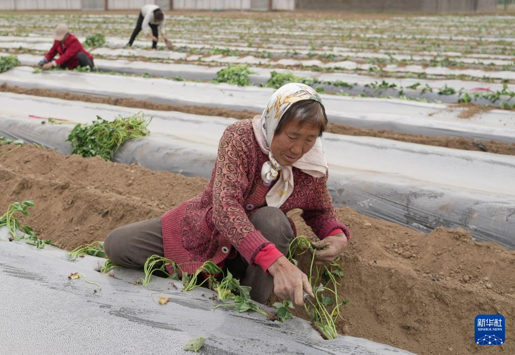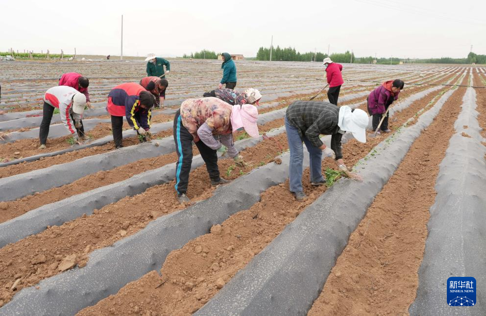 5月2日,卢龙县卢龙镇一家甘薯种植合作社的社员在田间栽种甘薯秧苗。