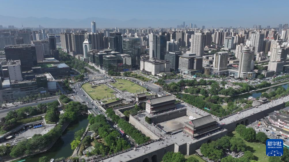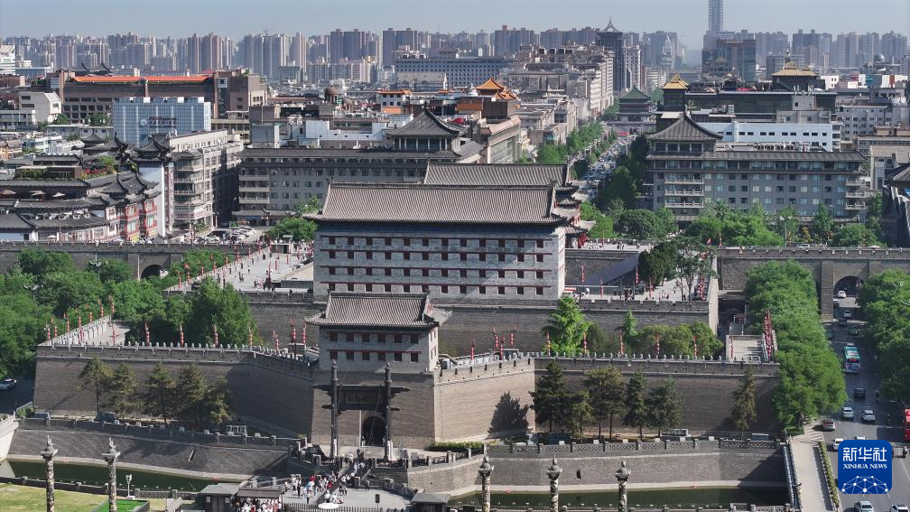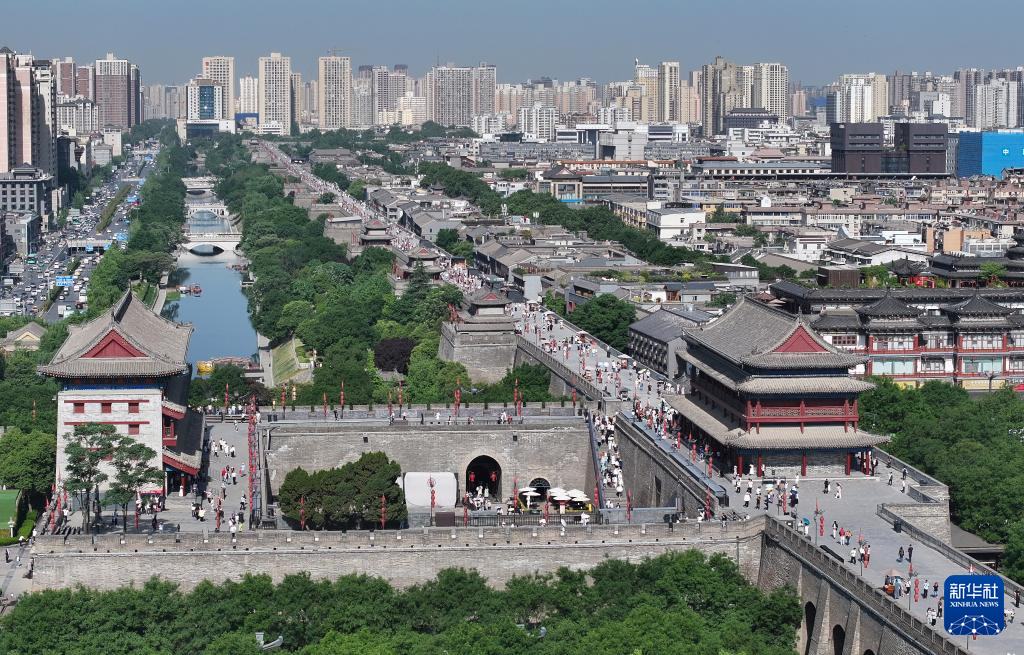 这是西安城墙永宁门(5月2日摄,无人机照片)。