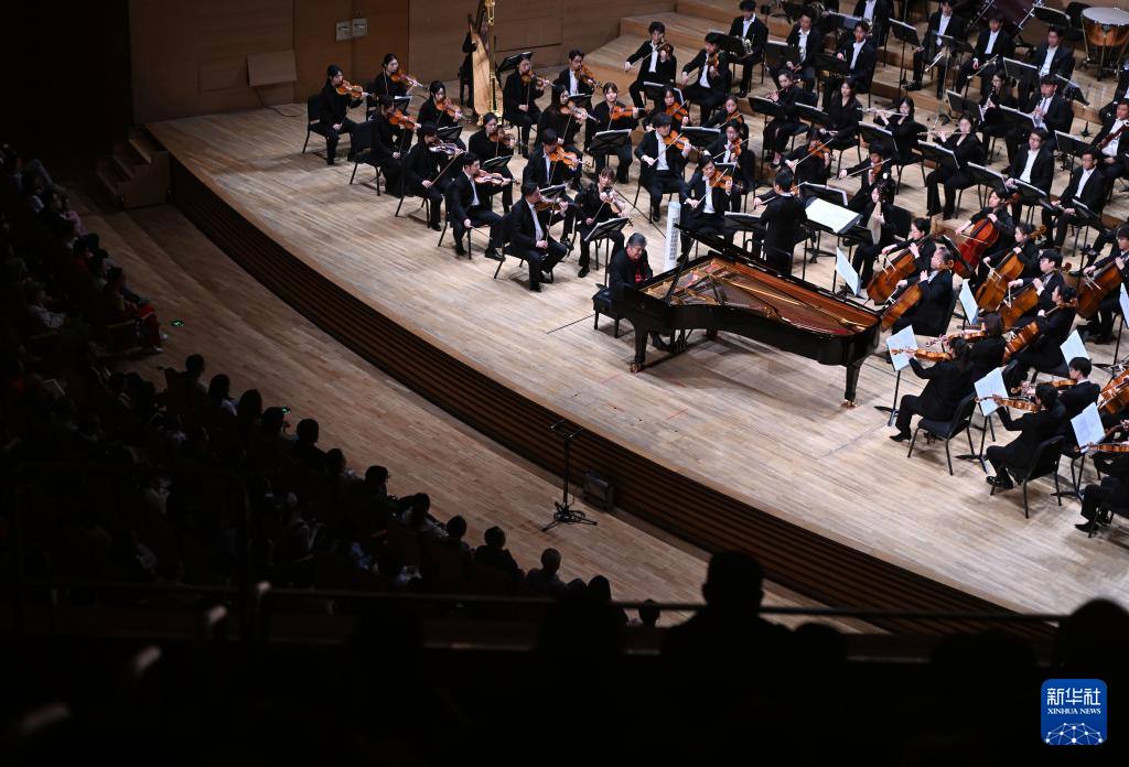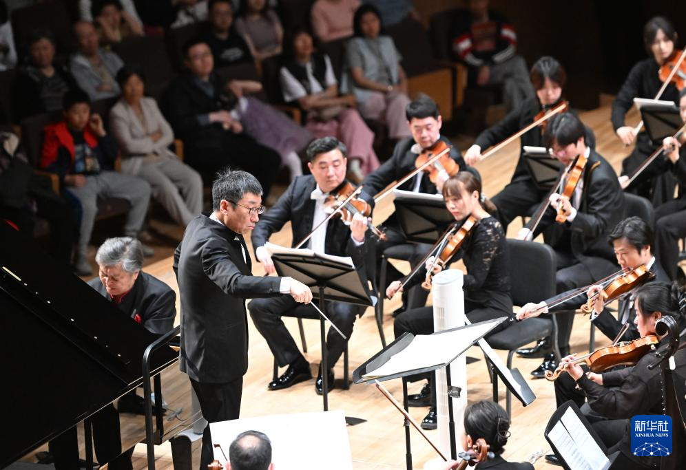 5月1日,钢琴家殷承宗(左一)在2025天津音乐节开幕式音乐会上演奏。