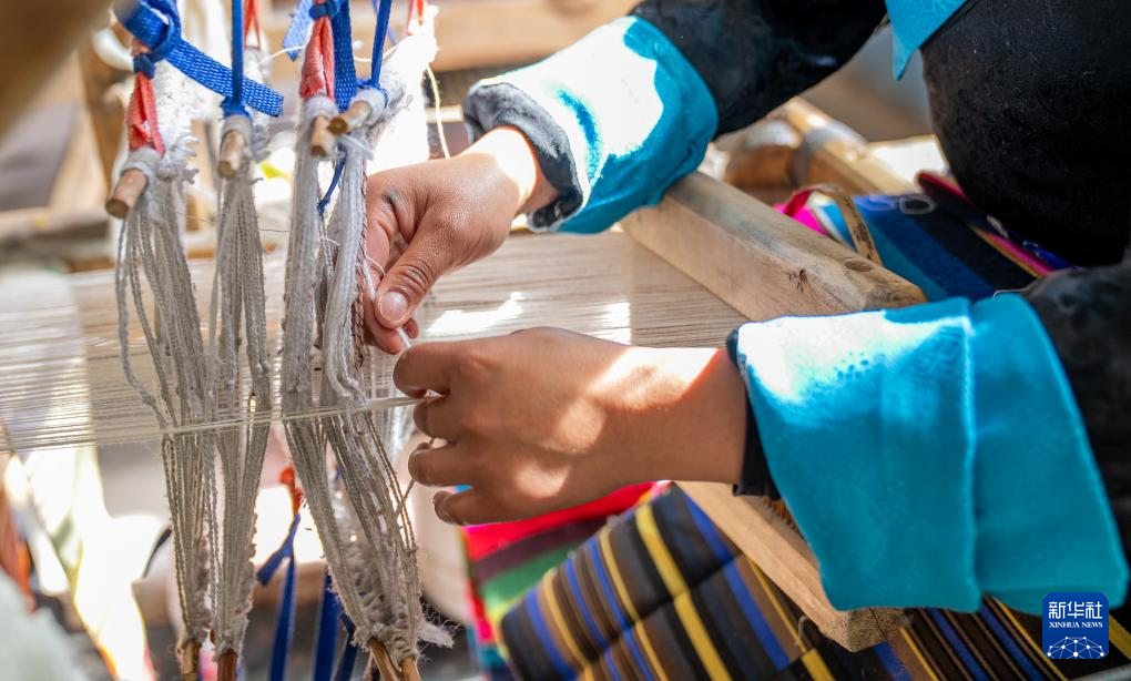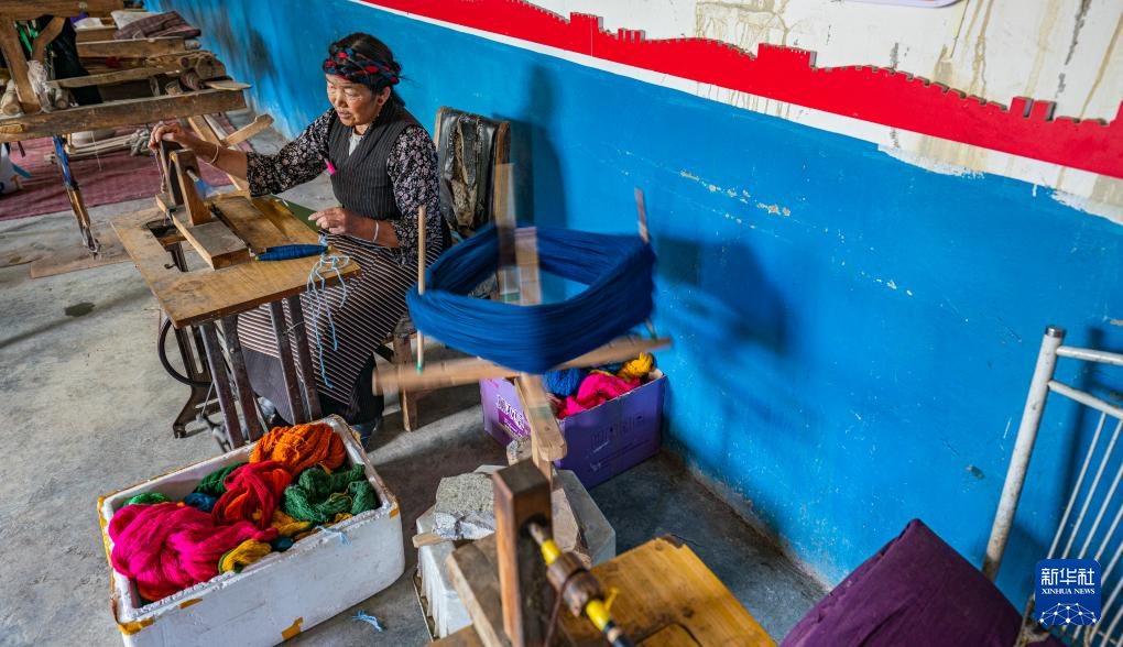 旦增卓嘎13岁开始跟着母亲学习“邦典”织造技艺,从漂洗羊毛、捻线染色到“邦典”织造,每一道工序她都牢记于心。