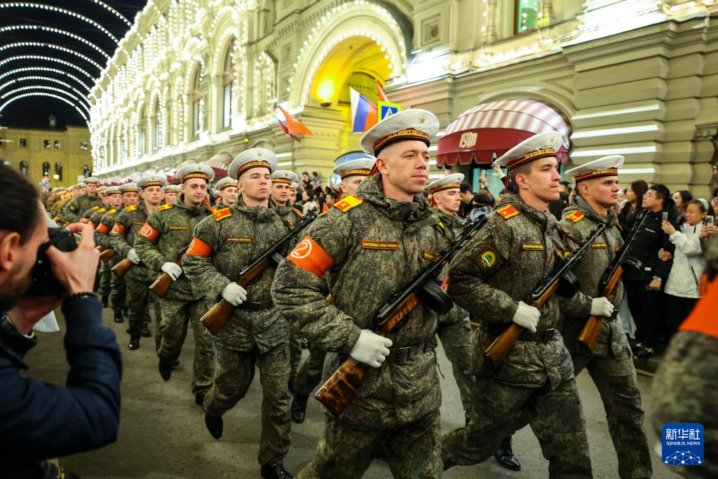 当日,俄罗斯纪念卫国战争胜利80周年阅兵式彩排在莫斯科举行。