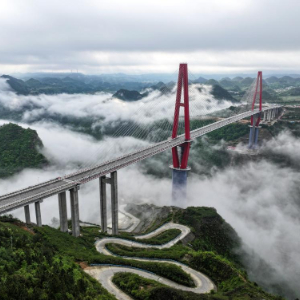 当日,一场春雨过后,贵州省龙里县的龙里河大桥周边出现云海景观,晨曦中的大桥仿佛飞架于云端之上,蔚为壮观。龙里河大桥全长1260米,主桥及塔柱设计有观光旅游玻璃栈道、全景观光电梯等旅游设施,是贵州探索“桥旅融合”打造的新“网红”景点。