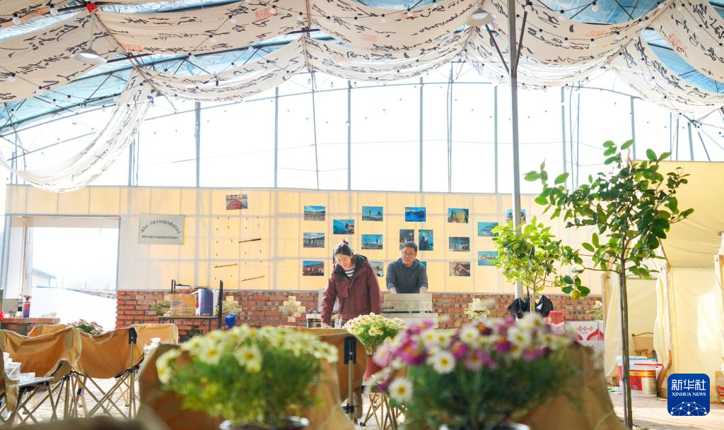4月28日,王佳玉(左)与宋跃在农旅融合的露营大棚内打扫卫生。