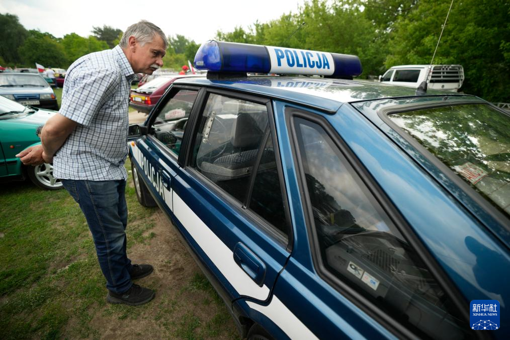 5月3日,一名男子在波兰首都华沙查看一辆老式警车。