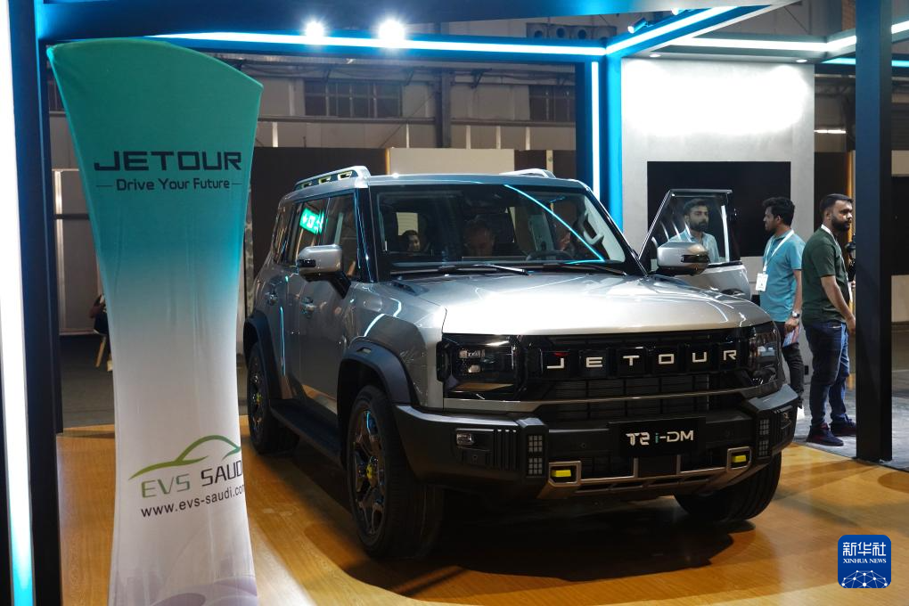 5月4日,在沙特阿拉伯利雅得举办的展会上,观众参观捷途汽车。