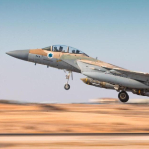 这张5月5日发布的未注明拍摄地点的照片显示,以色列空军战斗机飞往也门荷台达省执行空袭任务。