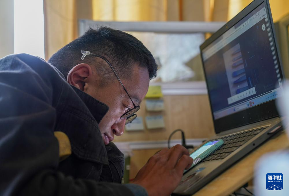 拉巴顿珠在公司将相关产品信息上传网络(5月5日摄)。