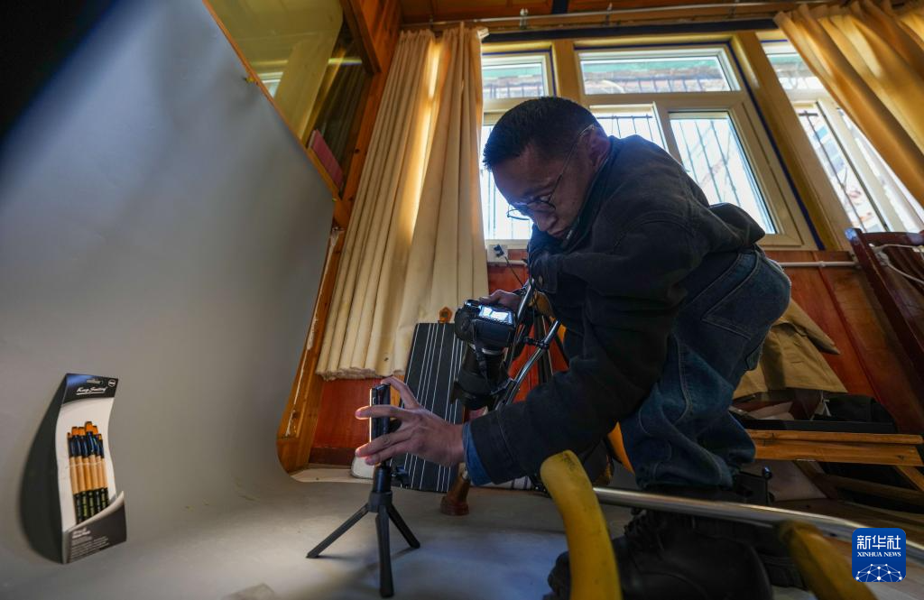 拉巴顿珠在公司拍摄产品(5月5日摄)。