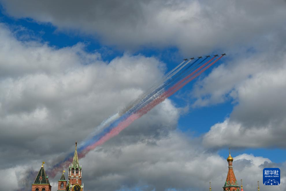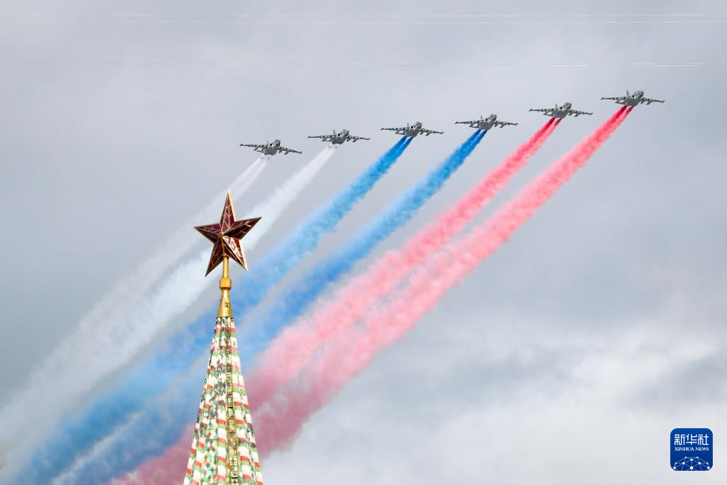 5月5日,在俄罗斯首都莫斯科,战机编队飞过红场,参加苏联伟大卫国战争胜利80周年阅兵式彩排。