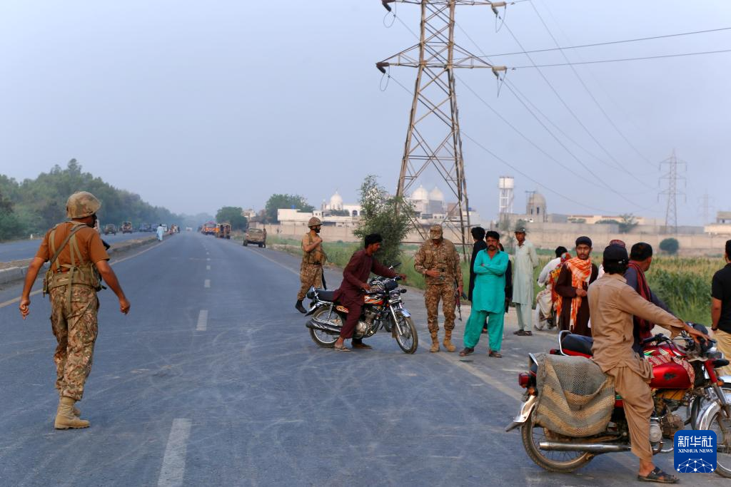 5月7日,在遭受印度导弹袭击的巴基斯坦东部旁遮普省巴哈瓦尔布尔地区,军人封锁了当地道路。