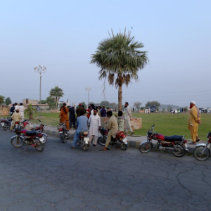 5月7日,在遭受印度导弹袭击的巴基斯坦东部旁遮普省巴哈瓦尔布尔地区,人们到户外避险。