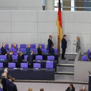 当日,德国新一届联邦政府成员在联邦议院全体会议上宣誓就职。