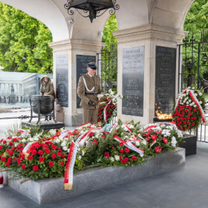 这是5月8日在波兰首都华沙拍摄的无名烈士墓。