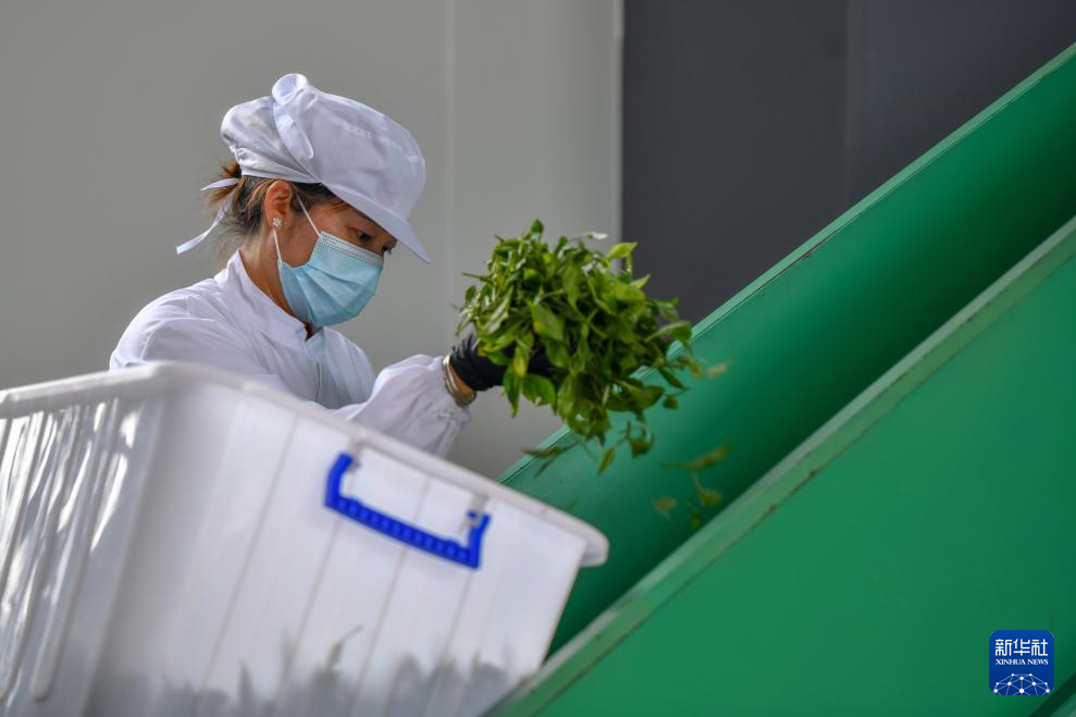 5月8日,工人在麻栗坡县猛硐乡新华国茶加工厂作业。