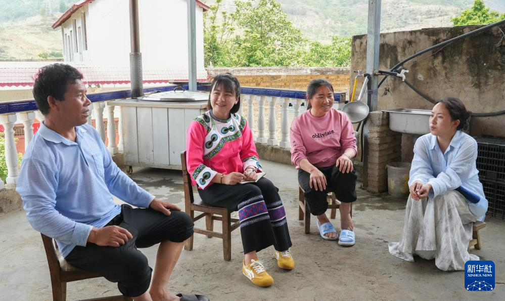 5月8日,卢丹在致富村向村民讲解农业政策。