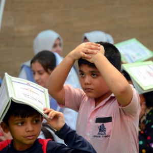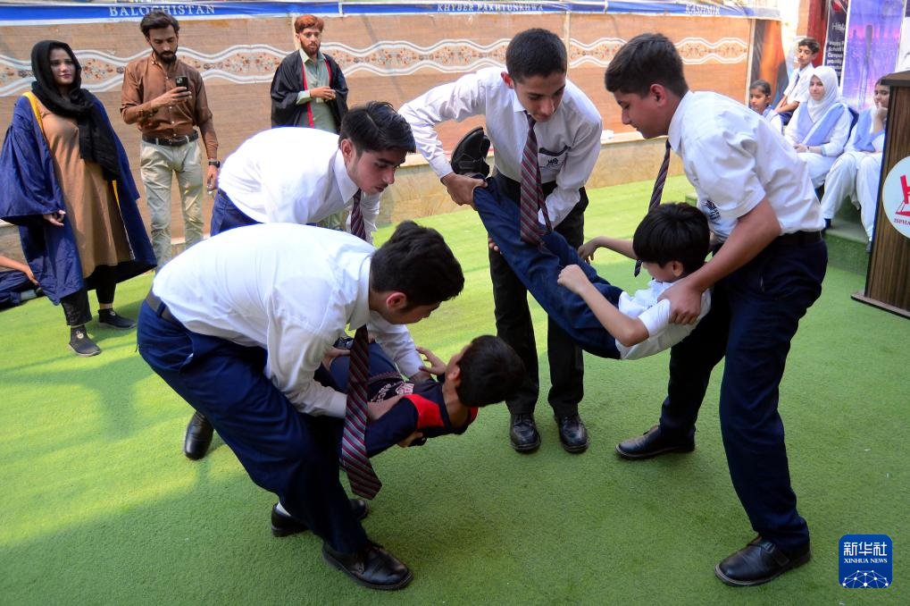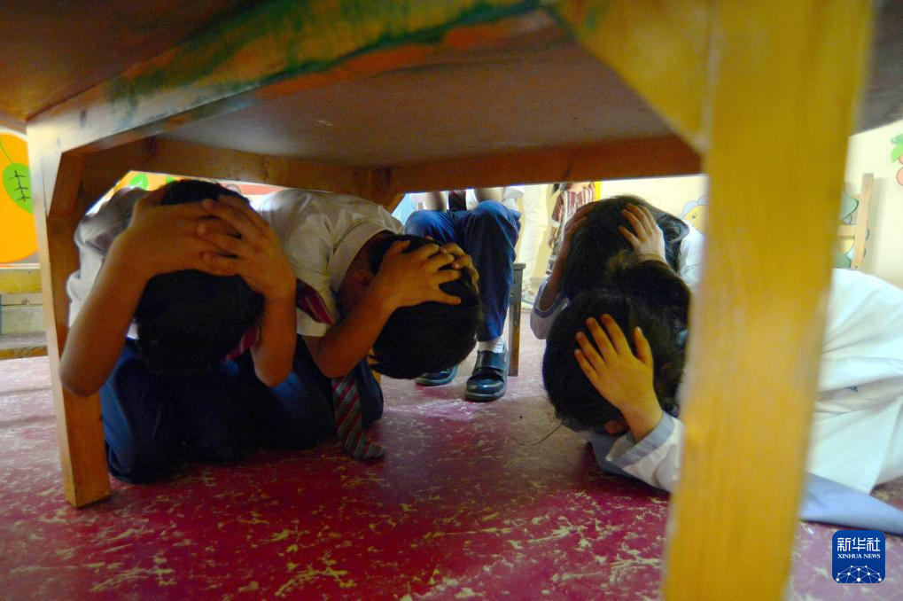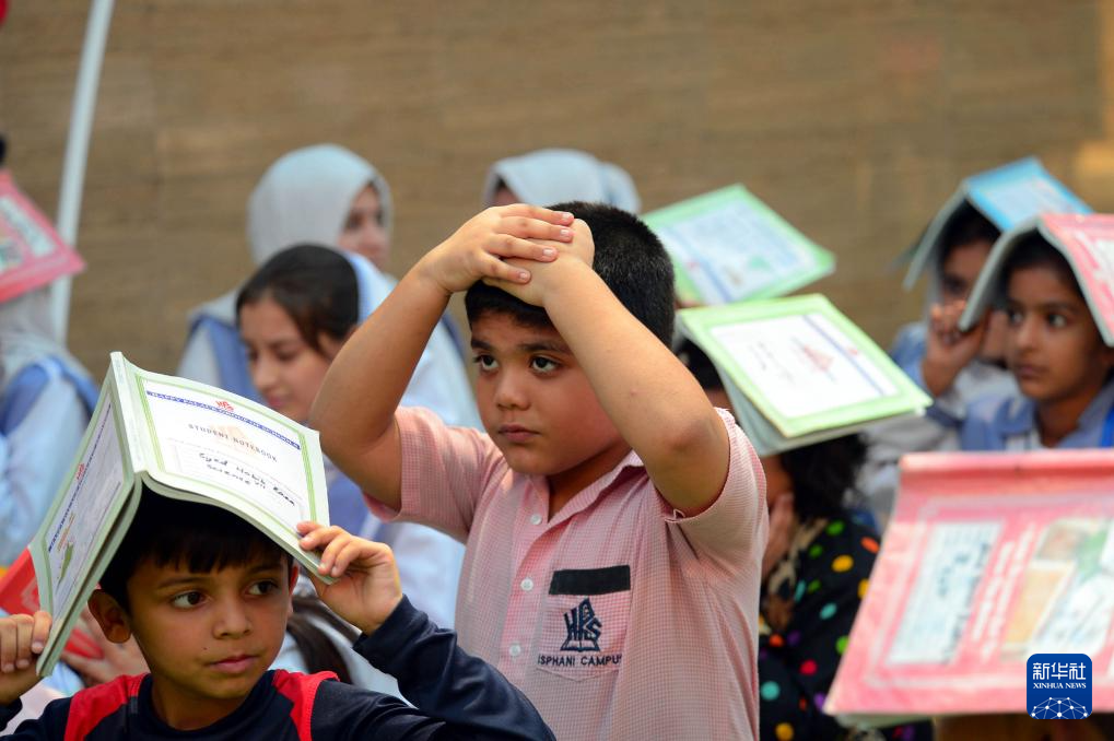 5月9日,在巴基斯坦南部港口城市卡拉奇,学生在印巴紧张局势升级的情况下参加应急演练。